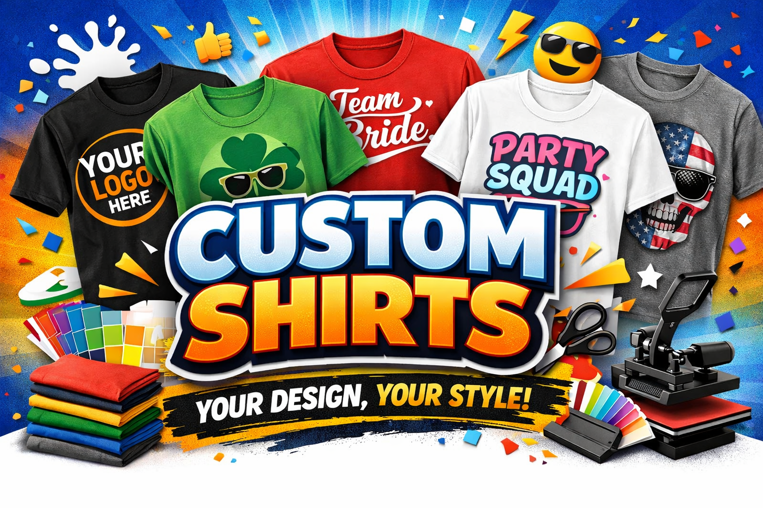 Our custom t-shirt business turns your ideas into wearable fun! Whether you’re repping your brand, celebrating a special event, or just showing off your personality.
